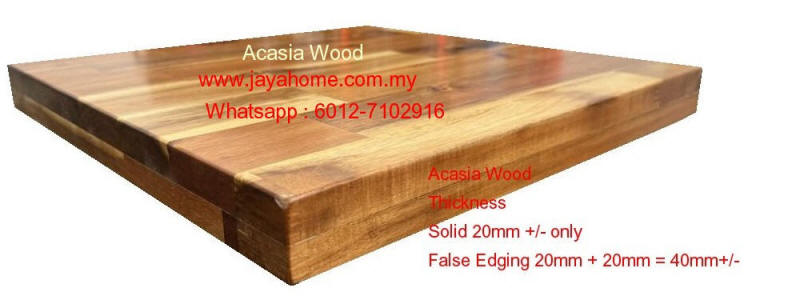 Acasia Wood Thickness Solid 20mm +/- only False Edging 20mm + 20mm = 40mm +/-
